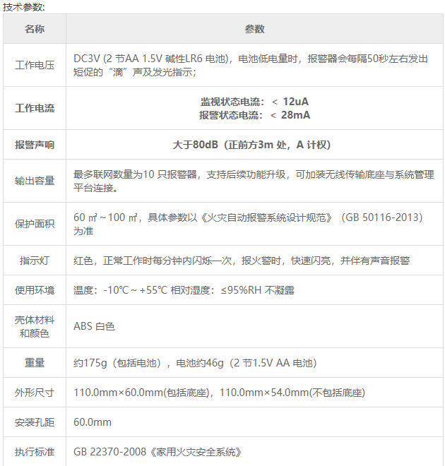 JTY-GF-TX6190 獨立式光電感煙火災探測報警器(以下簡稱報警器)能夠探測火災時產(chan) 生的大量煙霧,及時發出報警信號。報警器采用性能卓越的單片機(MCU),通過單片機內(nei) 部固化的運算程序來完成對外界環境參數變化的補償(chang) 和火警判斷。報警器工作穩定,外形美觀,安裝簡單,無需調試,支持10隻探測器互聯;同時支持後續功能升級,可加裝無線傳(chuan) 輸底座,與(yu) 係統平台連接。報警的同時通過手機短信、APP的方式通知係統平台預設人員,最多可設置5個(ge) 緊急聯係人。廣泛用於(yu) 家庭、賓館、公寓等場所進行火災安全監控。報警器內(nei) 置蜂鳴器,報警後發出強烈的聲響,同時具有消音功能。